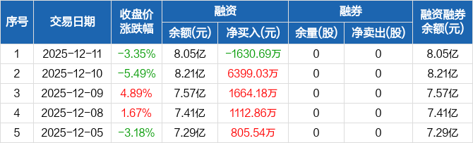 沃尔德:融资净偿还1630.69万元,融资余额8.05亿元(12-11)