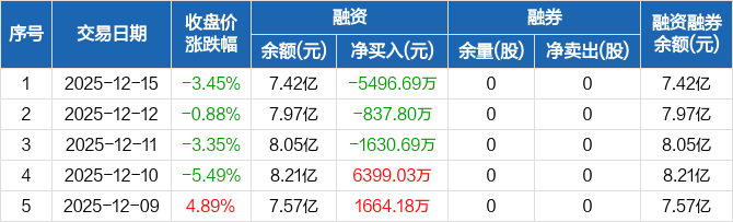 沃尔德:连续3日融资净偿还累计7965.18万元(12-15)