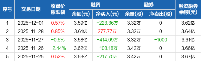 禾迈股份:融资净偿还223.36万元,融资余额3.59亿元(12-01)