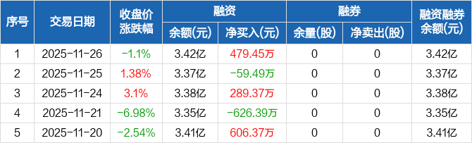 德邦科技:融资净买入479.45万元,融资余额3.42亿元(11-26)