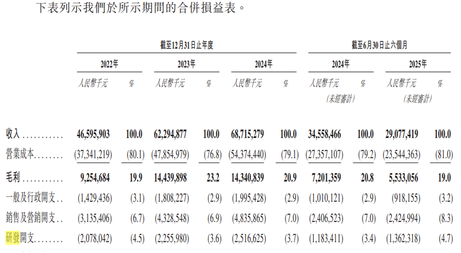 国内二级市场的反映也从侧面凸显了公司今年业绩表现不尽人意。公司港股招股书披露2025年上半年,公司营业收入290.77亿元,同比下滑15.86%;净利润12.42亿元,同比暴跌56.65%。此外,公司披露的2025年三季度业绩报告,2025年前三季度,公司营收495.4亿元,同比有所下滑3.33%;归母净利润为21.48亿元,同比下滑44.97%,公司盈利能力持续承压。