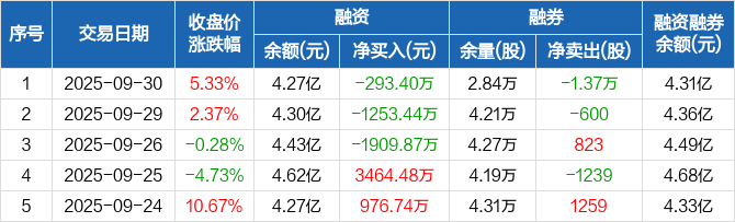 芯源微:连续3日融资净偿还累计3456.71万元(09-30)
