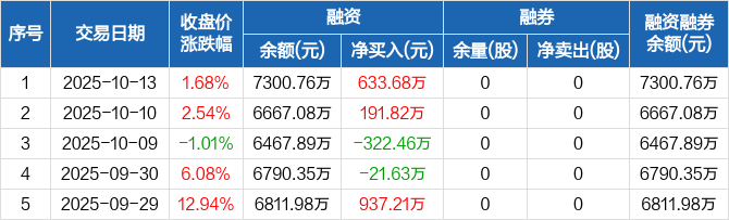 中科通达:融资净买入633.68万元,融资余额7300.76万元(10-13)