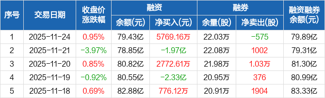 海光信息:融资净买入5769.16万元,融资余额79.43亿元(11-24)