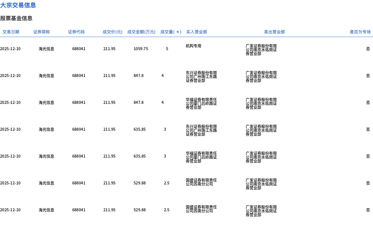 海光信息今日大宗交易折价成交24万股,成交额5086.81万元