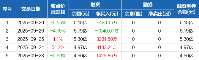 炬芯科技:融资净偿还420.15万元,融资余额5.15亿元(09-29)
