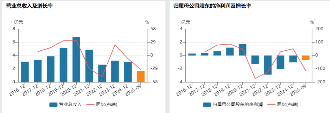 2024年虽然实现148.91万元的正值,但这一改善迹象未能延续至2025年。2025年前三季度,公司经营活动现金流量净额为-4098.21万元,“造血”能力仍然薄弱。