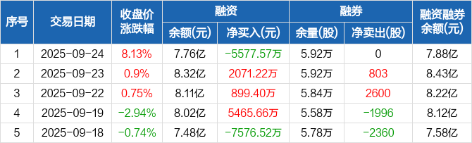 纳芯微:融资净偿还5577.57万元,融资余额7.76亿元(09-24)