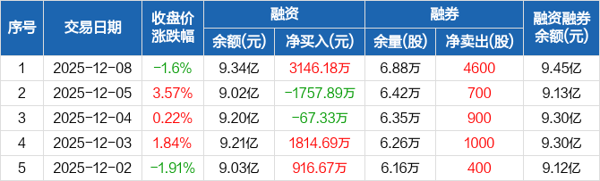 纳芯微:融资余额9.34亿元,创历史新高(12-08)
