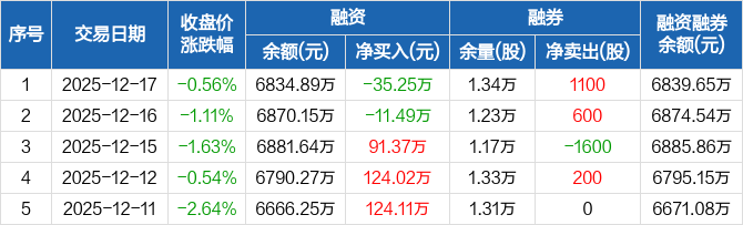 龙腾光电:融资净偿还35.25万元,融资余额6834.89万元(12-17)