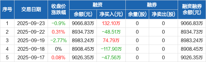 莱伯泰科:融资净买入132.1万元,融资余额9066.83万元(09-23)