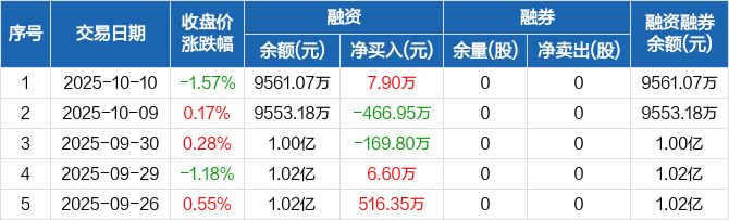 莱伯泰科:融资净买入7.9万元,融资余额9561.07万元(10-10)