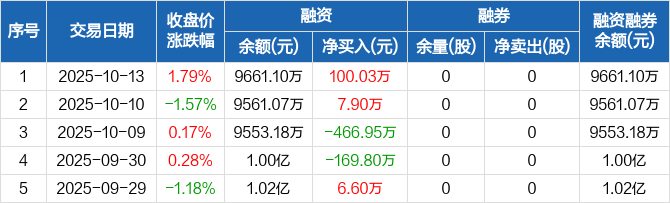 莱伯泰科:融资净买入100.03万元,融资余额9661.1万元(10-13)