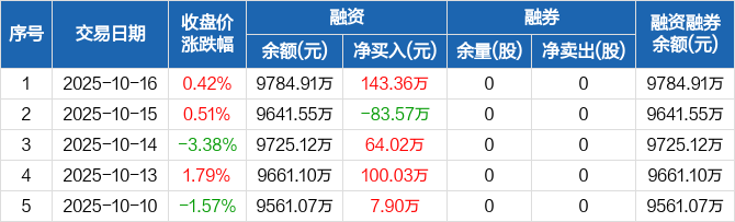 莱伯泰科:融资净买入143.36万元,融资余额9784.91万元(10-16)