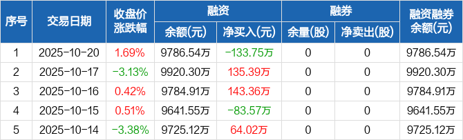 莱伯泰科:融资净偿还133.75万元,融资余额9786.54万元(10-20)