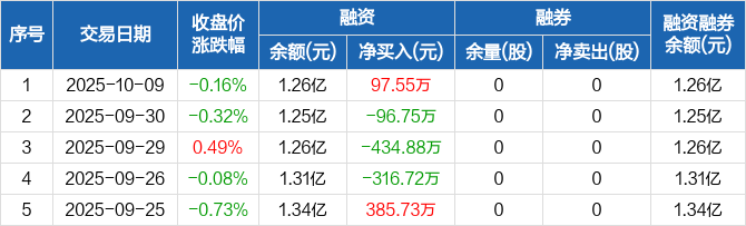 金达莱:融资净买入97.55万元,融资余额1.26亿元(10-09)