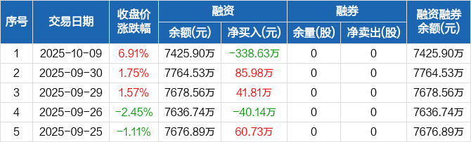 宝兰德:融资净偿还338.63万元,融资余额7425.9万元(10-09)