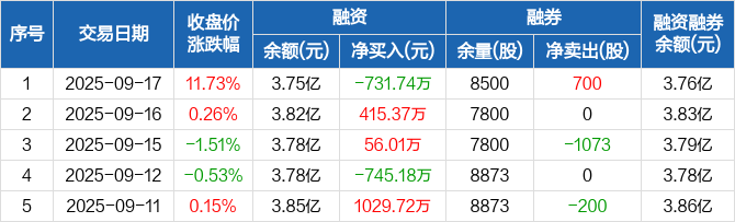 华锐精密:融资净偿还731.74万元,融资余额3.75亿元(09-17)