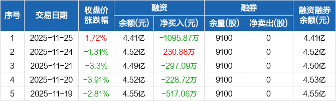 华锐精密:融资净偿还1095.87万元,融资余额4.41亿元(11-25)
