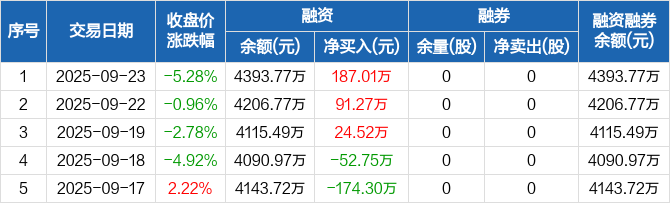 云涌科技:融资余额4393.77万元,创近一年新高(09-23)