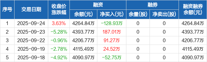 云涌科技:融资净偿还128.93万元,融资余额4264.84万元(09-24)