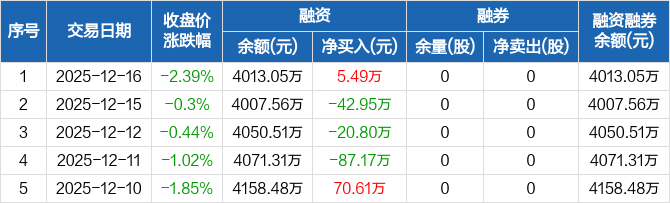 云涌科技:融资净买入5.49万元,融资余额4013.05万元(12-16)