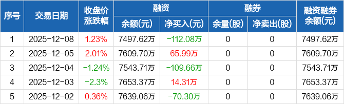 灿瑞科技:融资净偿还112.08万元,融资余额7497.62万元(12-08)