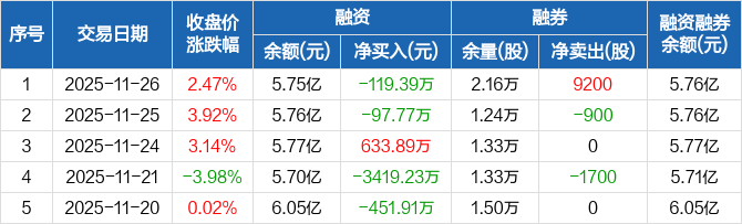 迈威生物:融资净偿还119.39万元,融资余额5.75亿元(11-26)