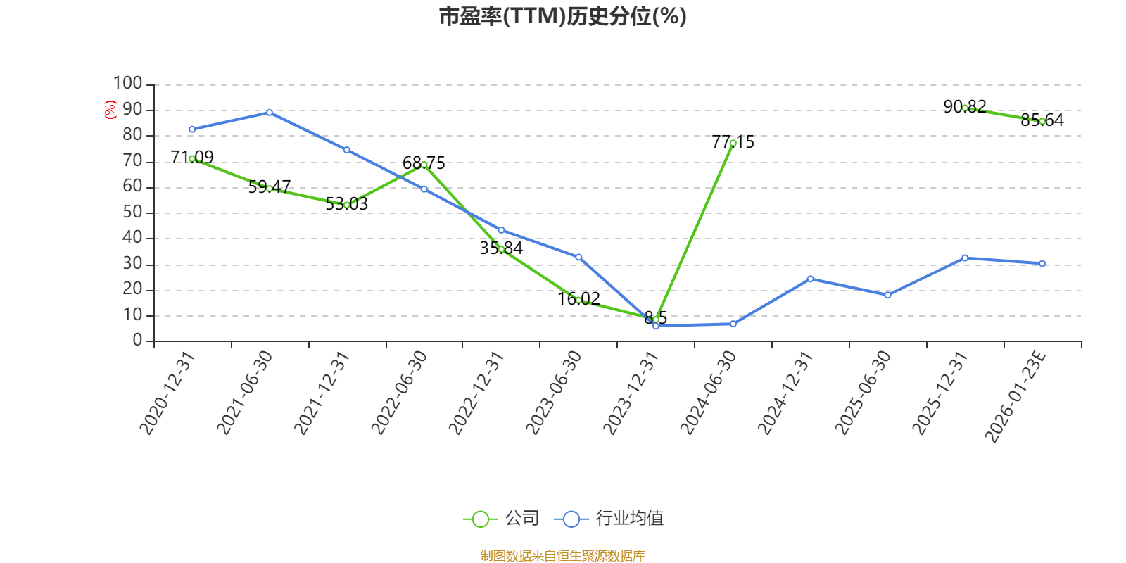 以本次披露业绩预告均值计算,公司近年市盈率(TTM)图如下所示:
