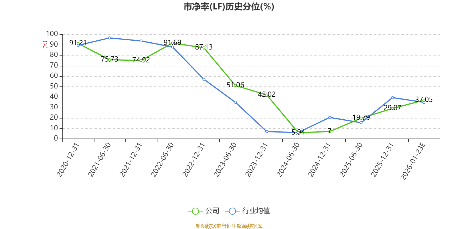 市盈率、市净率为负时,不显示当期分位数,会导致折线图中断。