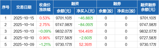 德林海:融资净偿还46.88万元,融资余额9701.1万元(10-15)