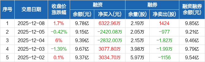 拓荆科技:融资净买入6322.96万元,融资余额9.78亿元(12-08)
