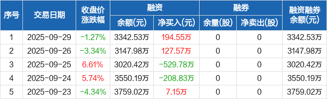 毕得医药:融资净买入194.55万元,融资余额3342.53万元(09-29)