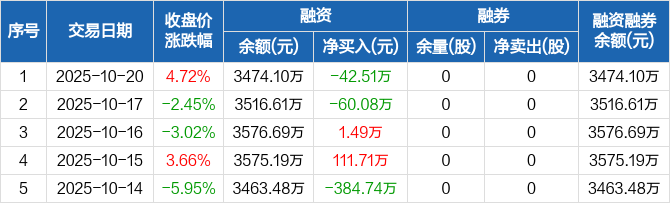 毕得医药:融资净偿还42.51万元,融资余额3474.1万元(10-20)