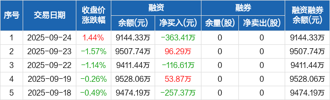 安旭生物:融资净偿还363.41万元,融资余额9144.33万元(09-24)