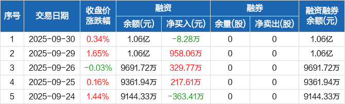 安旭生物:融资净偿还8.28万元,融资余额1.06亿元(09-30)