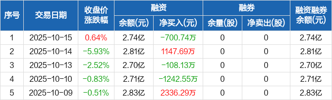映翰通:融资净偿还700.74万元,融资余额2.74亿元(10-15)