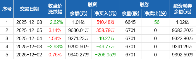 晶品特装:融资净买入510.48万元,融资余额1.01亿元(12-08)