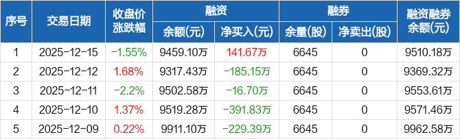 晶品特装:融资净买入141.67万元,融资余额9459.1万元(12-15)