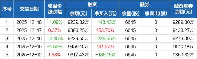 晶品特装:融资净偿还143.43万元,融资余额9239.82万元(12-18)