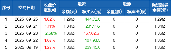 英科再生:融资净偿还444.72万元,融资余额1.29亿元(09-25)