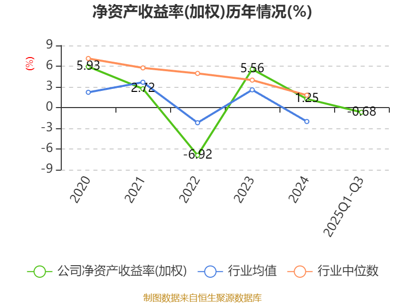 盈利能力方面, 2025年前三季度公司加权平均净资产收益率为-0.68%,同比下降1.15个百分点。公司2025年前三季度投入资本回报率为-0.56%,较上年同期下降0.89个百分点。