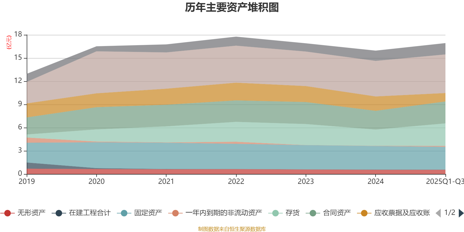 资产重大变化方面,截至2025年三季度末,公司应收票据及应收账款较上年末减少41.43%,占公司总资产比重下降5.21个百分点;存货较上年末增加38.17%,占公司总资产比重上升3.99个百分点;固定资产较上年末减少3.51%,占公司总资产比重下降1.75个百分点;合同资产较上年末增加16.97%,占公司总资产比重上升1.55个百分点。