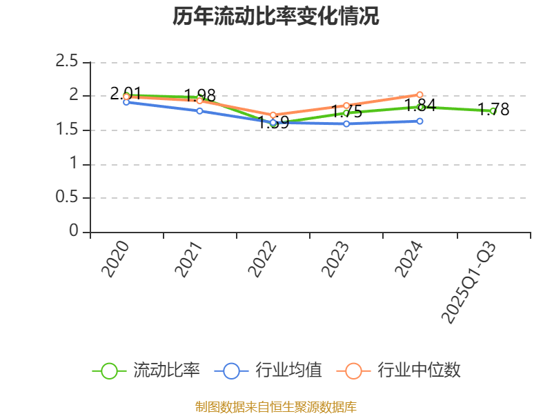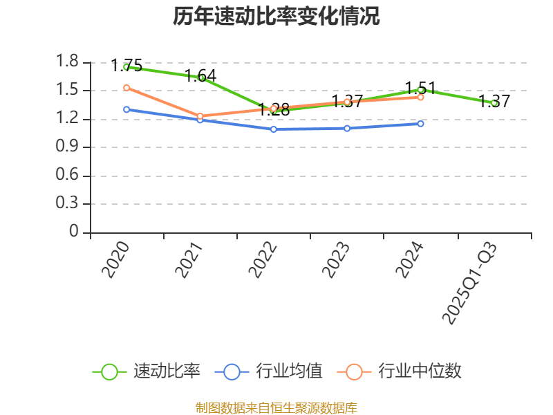 2025年前三季度,公司流动比率为1.78,速动比率为1.37。
