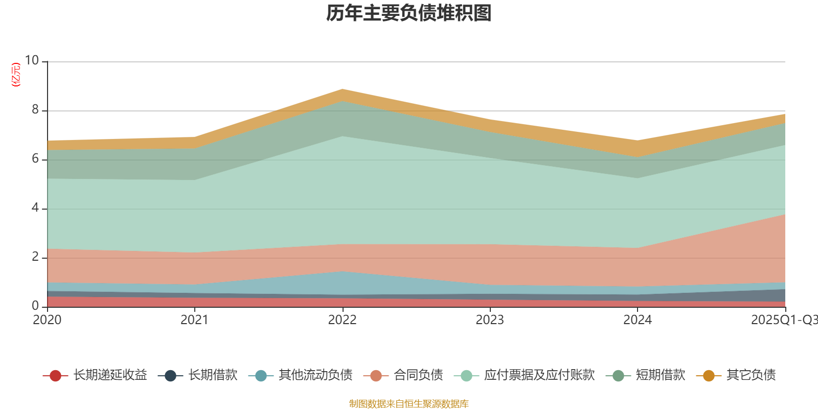负债重大变化方面,截至2025年三季度末,公司合同负债较上年末增加76.32%,占公司总资产比重上升6.52个百分点;长期借款较上年末增加94.62%,占公司总资产比重上升1.36个百分点;应付票据及应付账款较上年末减少0.43%,占公司总资产比重下降1.1个百分点;其他流动负债较上年末减少14.53%,占公司总资产比重下降0.4个百分点。
