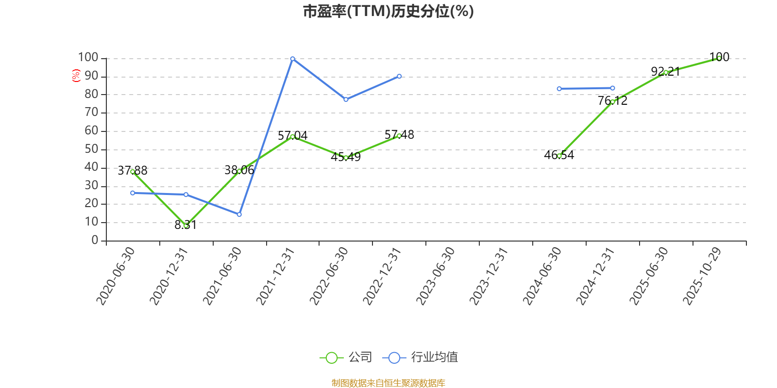 市盈率、市净率为负时,不显示当期分位数,会导致折线图中断。