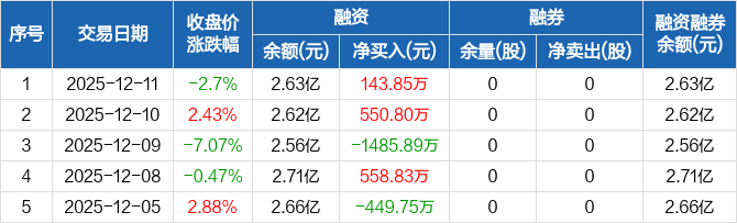 瑞松科技:融资净买入143.85万元,融资余额2.63亿元(12-11)