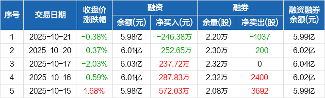 上海谊众:融资净偿还246.38万元,融资余额5.98亿元(10-21)