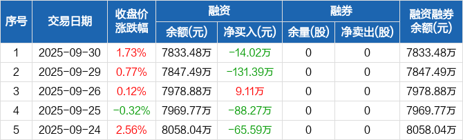 爱科科技:融资净偿还14.02万元,融资余额7833.48万元(09-30)