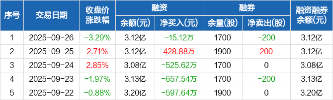福昕软件:融资净偿还15.12万元,融资余额3.12亿元(09-26)
